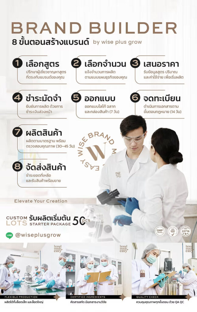 หากคุณกำลังมองหาพันธมิตรที่เข้าใจทั้ง การผลิตและการสร้างแบรนด์ สามารถเข้ามาปรึกษากับ Wise Plus Grow ได้ที่