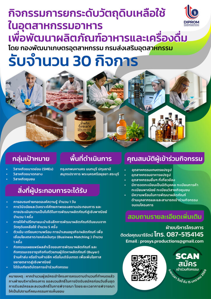 รับจำนวนจำกัด 30 กิจการ รับสมัครด่วน!! ฟรี!! ไม่มีค่าใช้จ่าย !! ตั้งแต่วันนี้ – 15 มกราคม 2569